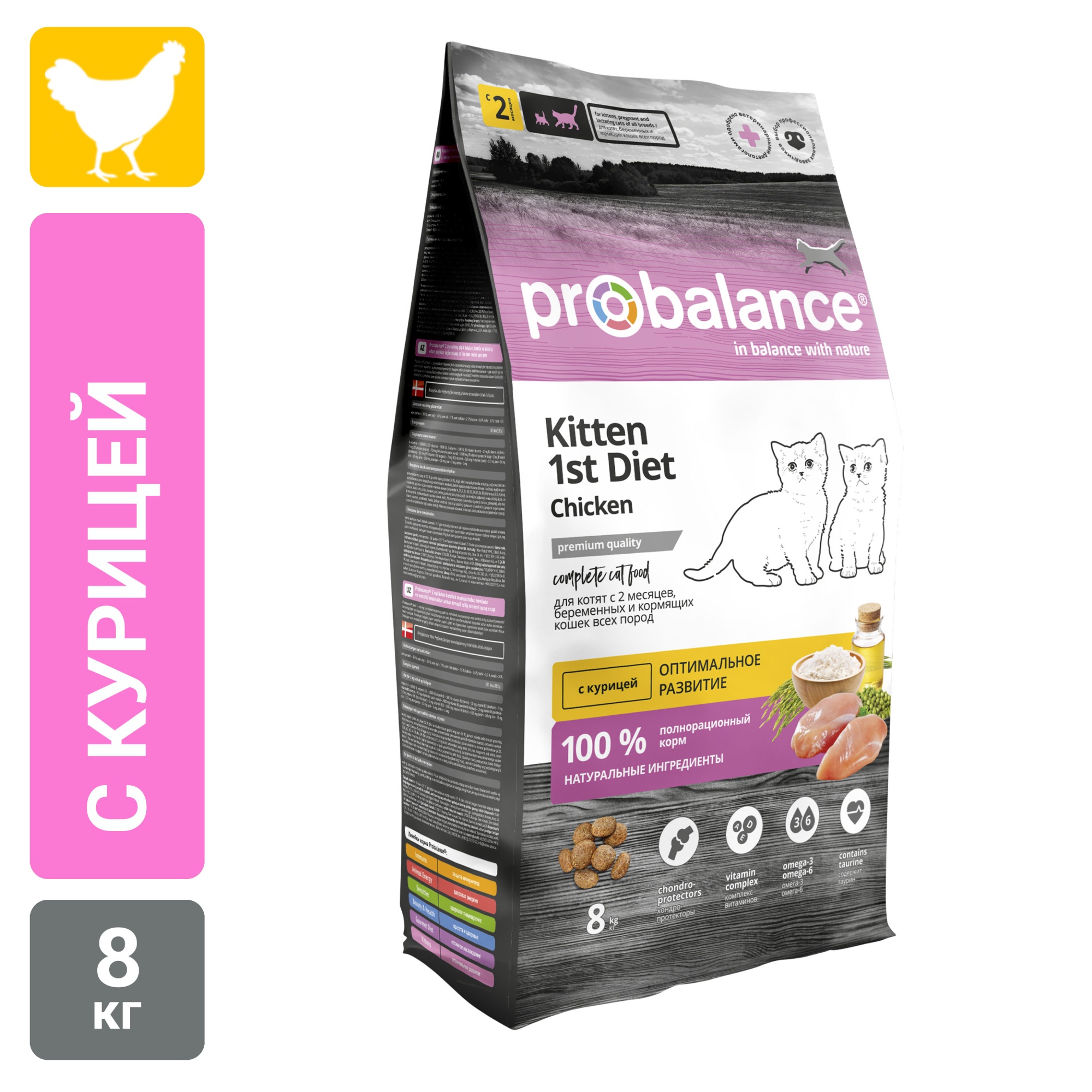 Полнорационный сбалансированный сухой корм премиум класса с цыпленком для котят всех пород. Корм рекомендован для ежедневного кормления котят с 2 месяцев, а также беременных и кормящих кошек.