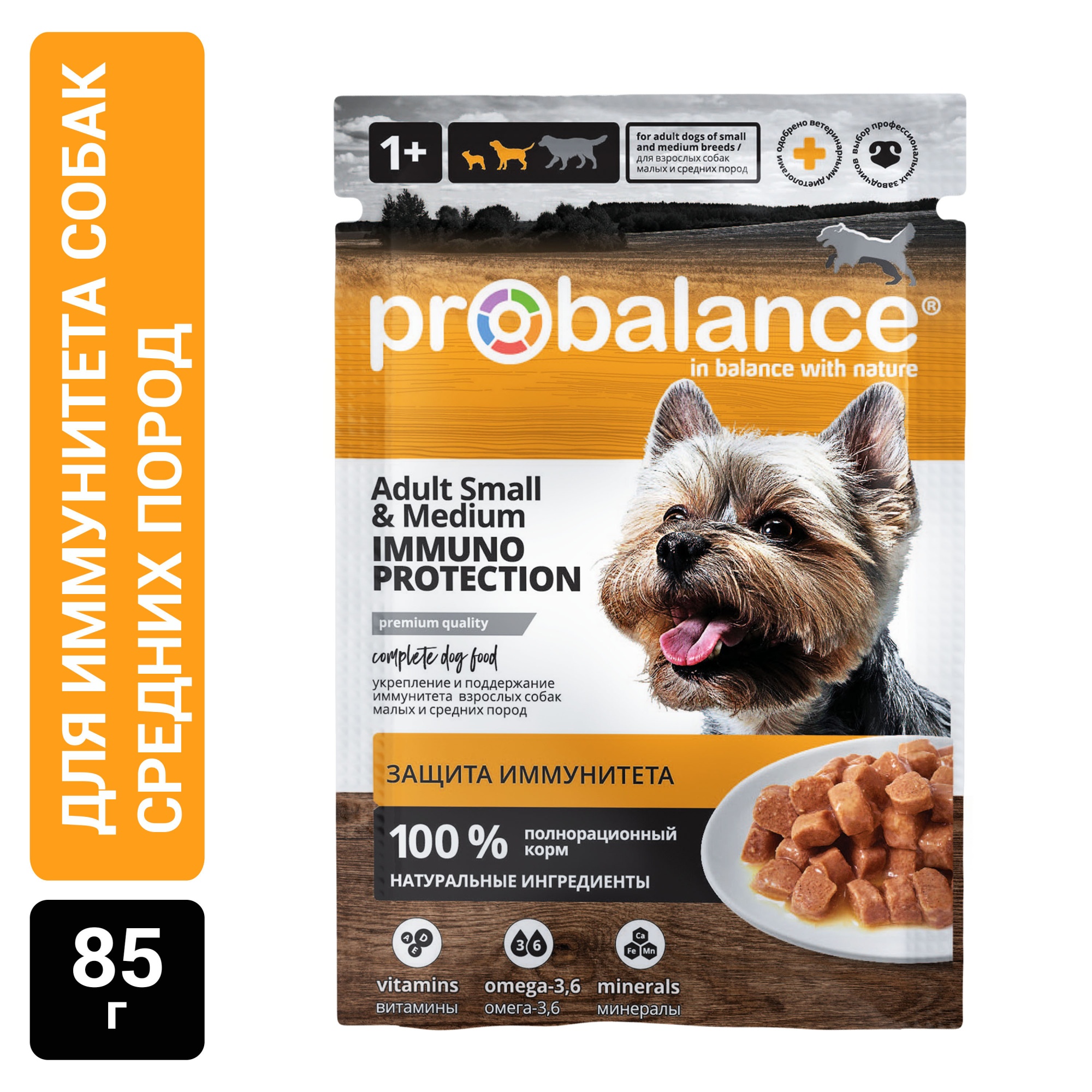 Влажный рацион Probalance Immuno Protection разработан практикующими датскими ветеринарами. Корм учитывает индивидуальные особенности собак малых и средних пород. Разнообразные мясные компоненты корма обеспечивают высокие потребности собак в белке. Природные антиоксиданты, содержащиеся в кусочках мяса, необходимы для укрепления иммунитета, а специально подобранный пребиотик поддерживает здоровую микрофлору кишечника.