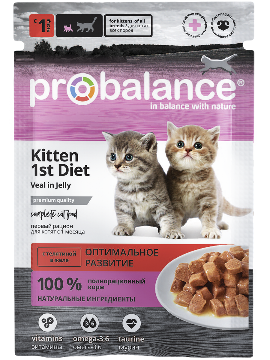 Влажный корм Probalance Kitten 1st diet разработан практикующими датскими ветеринарами для гармоничного роста и развития котят.