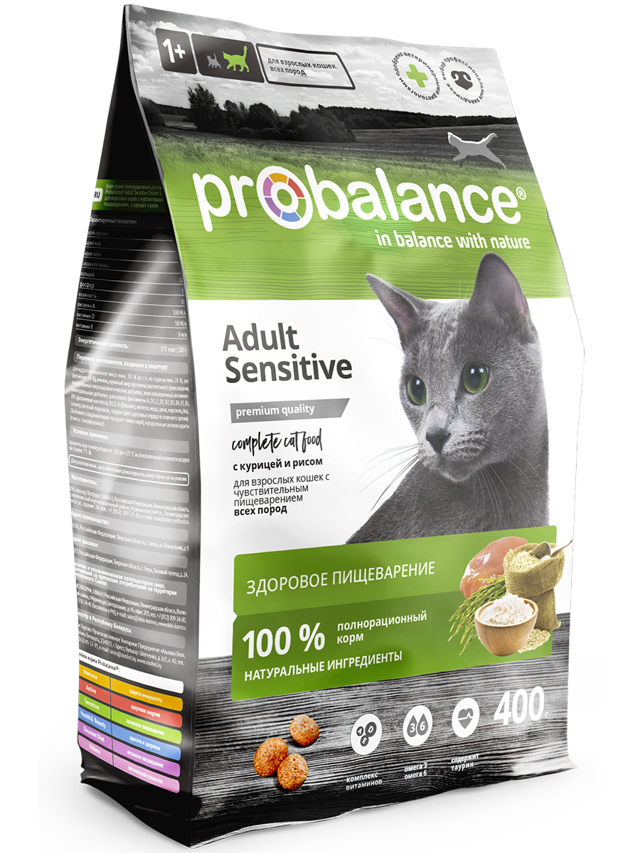 Сухой корм Probalance Sensitive разработан практикующими датскими ветеринарами. Состав корма подобран таким образом, что он полностью удовлетворяет потребности кошек в питательных веществах, витаминах и минералах.