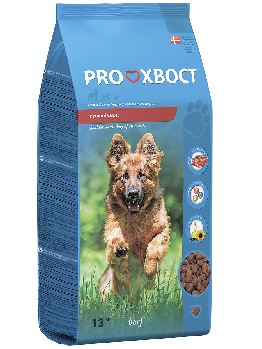 Сухой корм Proхвост (Прохвост) для собак имеет превосходный вкус, который достигается за счет высокого содержания белка животного происхождения.